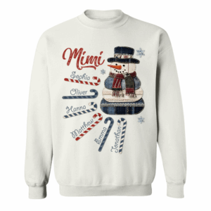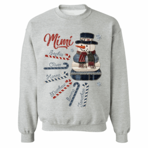 Make Grandma’s Christmas extra special with this Personalized Mimi Christmas Sweatshirt! Featuring a cozy denim patchwork snowman and candy cane design, each piece can be customized with your grandkids’ names for a truly one-of-a-kind holiday gift. Perfect for festive gatherings, winter family photos, or as a thoughtful Christmas present for Mimi.